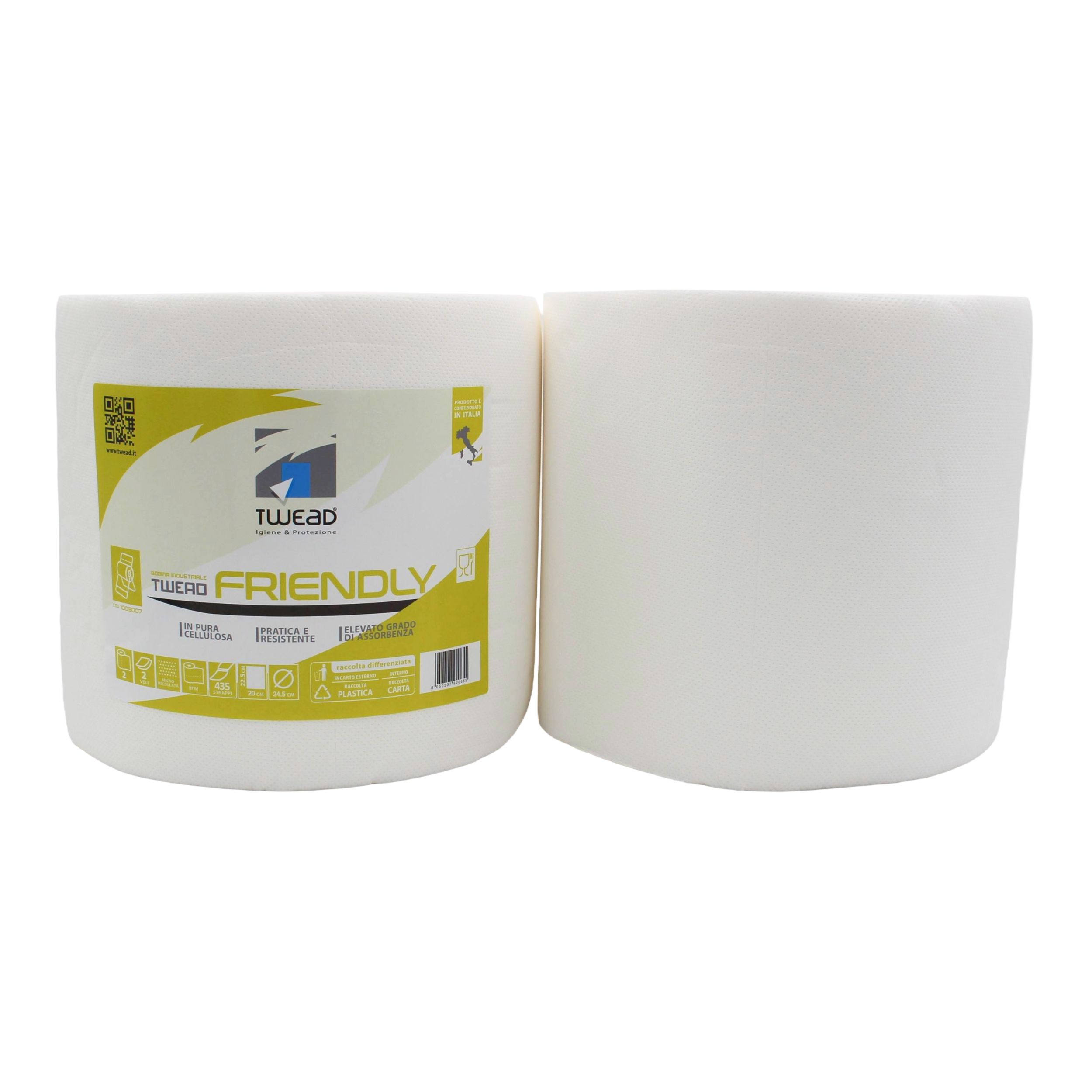 TWEAD Friendly- Rotoli carta 435 strappi in pura cellulosa, 2 veli. Elevato grado di assorbenza, praticità e resistenza. Idoneo al contatto alimentare. Ideale per l’impiego in tutti i settori.
